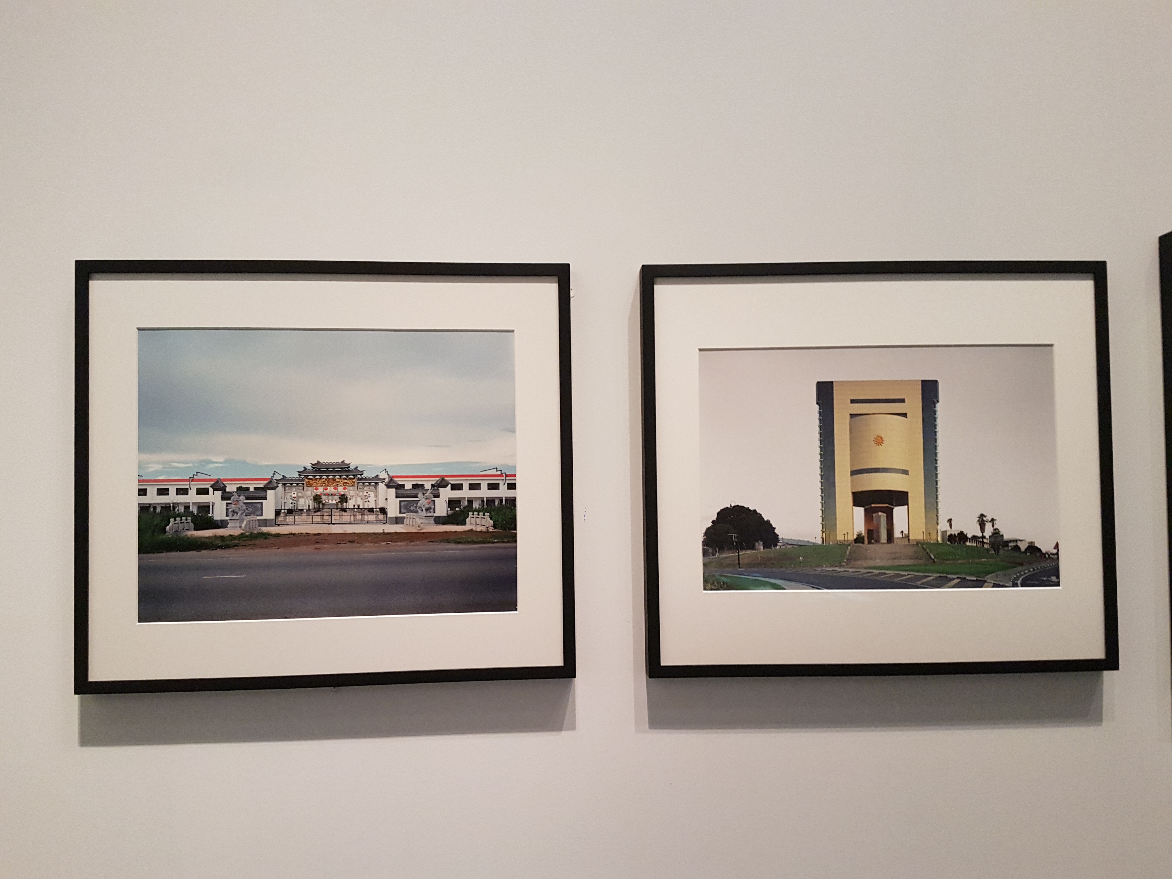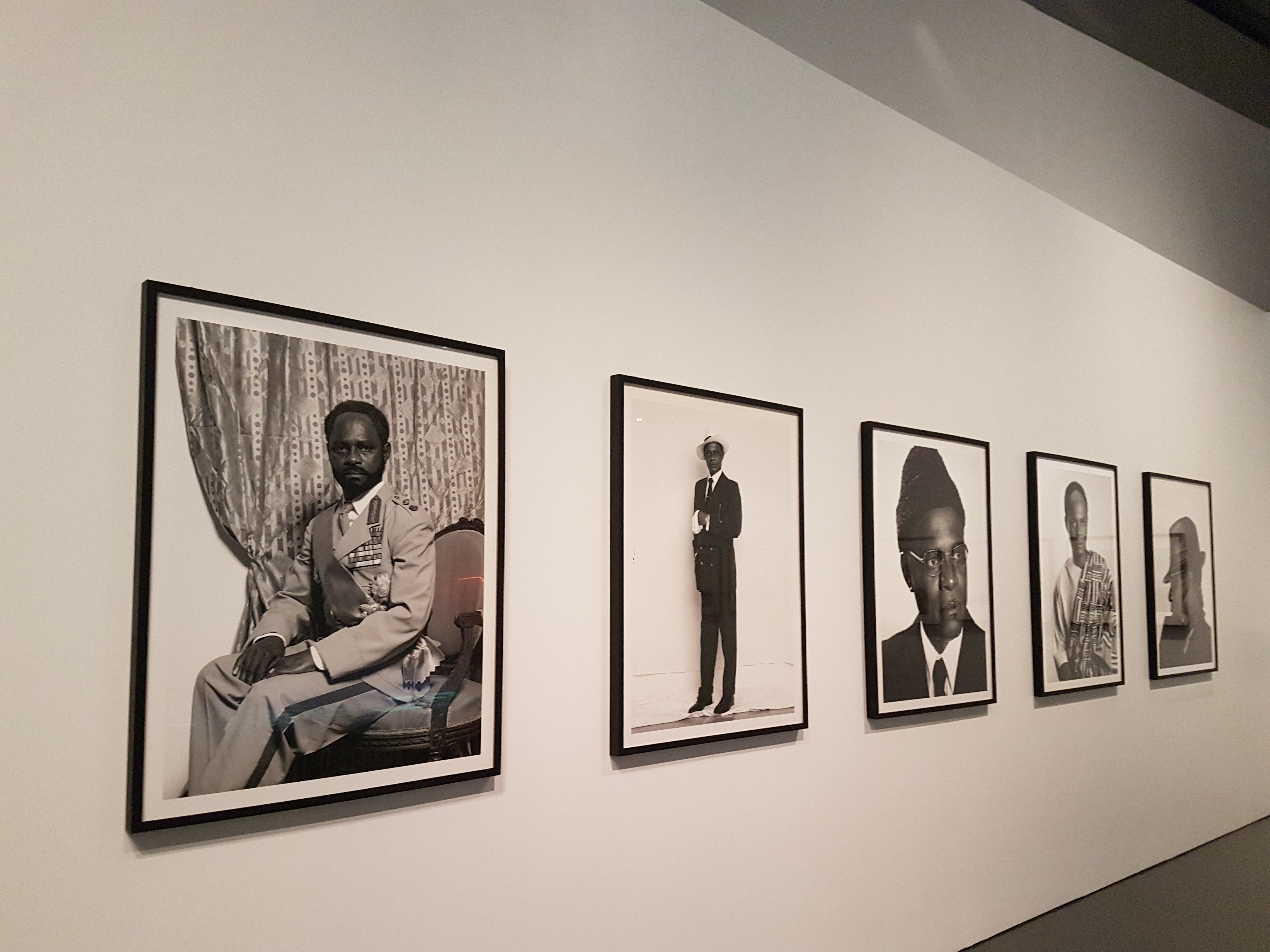 D’entrée, les visiteurs font face à une multitude d’images exposant les différentes expressions faciales d’un homme noir, qui est en réalité le photographe camerounais, centrafricain et français Samuel Fosso. On retrouve ainsi d’autres images du photographe dans la partie 2 de l’exposition, où Samuel Fosso pour la série « African Spirits » (2008) se déguise en personnalités politiques panafricaines et afro-américaines phares du XXème siècle. Les photos de Samuel Fosso tranchent avec les a priori visuels qui collent aux hommes noirs et surtout africains. Le photographe se prend comme modèle, , en se ré-appropriant son corps et son image et s’essayant à des jeux de rôles, pour donner des images presque théâtrales. Nous retrouvons aussi les images presque d’époque mais datant de 2013, issue du projet « A Monumental Tour » (2013), du photographe sud-coréen Che Onejoon, qui grâce à ces images de monuments et bâtisses post coloniales d’Afrique Subsaharienne construites par des une main d’oeuvre sud-coréenne, l’artiste connecte les liens étroits économiques et culturels entre le soft power de la Corée du Nord et du Sud, sur le continent Africain