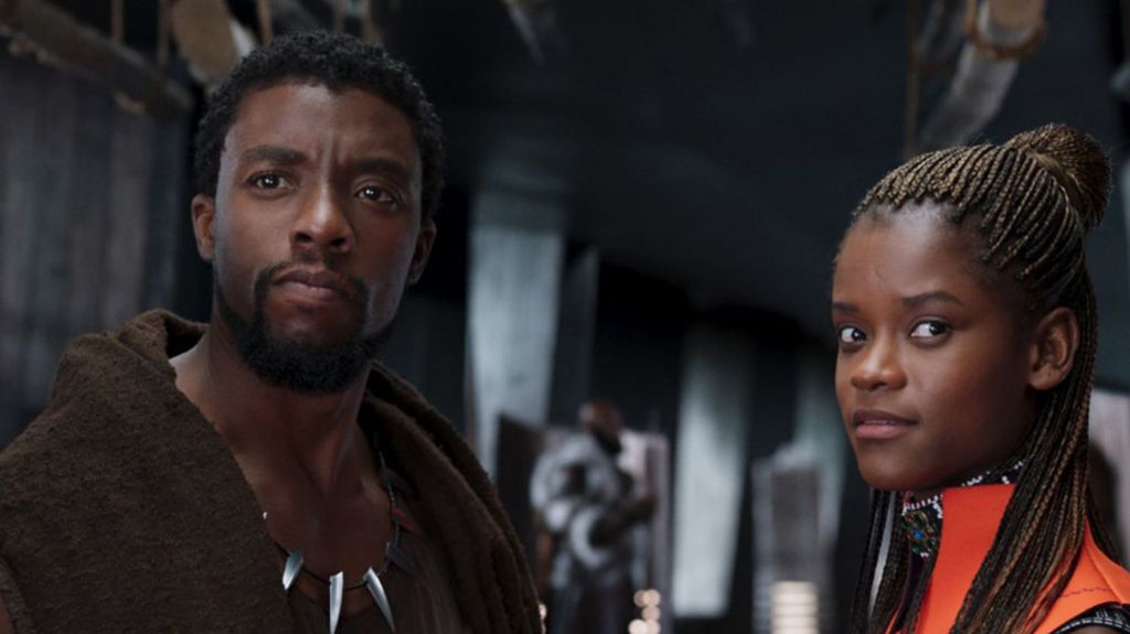 Black Panther joué par Chadwick Boseman et Shuri jouée par Letitia Wright, dans Black Panther (2018)