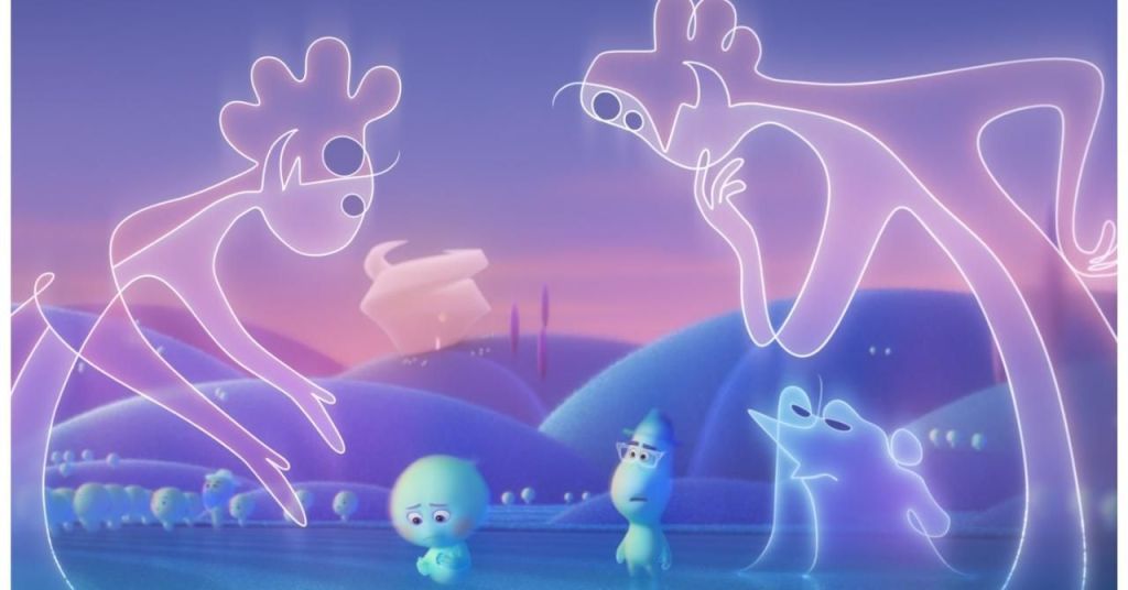 Qui dit soul (âme en français) implique forcément l’immanent et le monde invisible et surnaturel. La particularité du film est qu’il navigue entre ces deux mondes, le fantastique qui serait « l’irruption brutale du surnaturel dans le réel » et le surnaturel qui « postule l’existence d’un monde invisible à côté du monde visible. Il relève d’une croyance religieuse ou mystique« . (cf. études littéraires). Dans le film, la spiritualité qui complète mais diffère de la religion, régit notre monde et nous pousse à comprendre notre place en tant qu’entité physique et métaphysique comme l’Homme questionne le Soleil ou sa propre existence. Dans Soul, les âmes et leur importance sont fondamentales. Nos personnalités et caractères sont revus et redéfinis. Ainsi le film remet au goût du jour le clivage ancestral de l’inné et de l’acquis : il est certain que la société nous façonnent et nous transforment (socialisation) mais une partie de nous subsiste, cette étoile ou étincelle en nous, qui nous distance des autres et fait de nous des individus. Dans Soul, l’au delà est vu comme un endroit méritocratique, symbolisé par trois zones : le grand avant, le grand après et la zone. Le « grand avant » regroupe ces âmes nouvelles qui doivent se conformer et trouver leur place avant d’être envoyées sur Terre. Si une âme ne rentre pas dans une case, elle restera dans le grand avant.