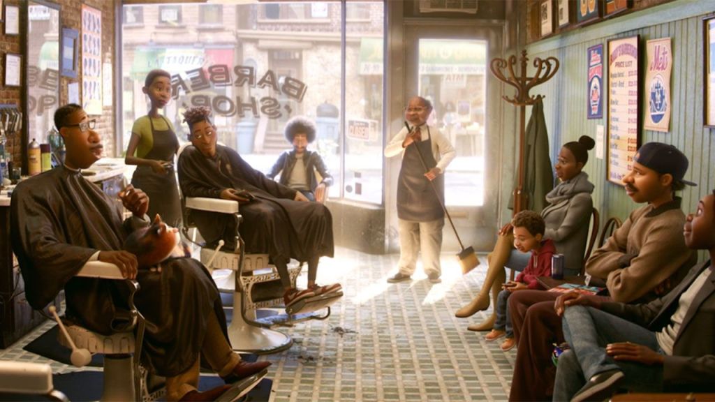 Enfin Pixar vient encore nous prouver qu’ils ne font jamais les choses à moitié en terme d’animation et graphisme. Soul a réussi à retranscrire un semblant de réalisme des personnages noirs du film. De la variété des traits du visages à la texture du cheveu crépu, on a jamais été aussi proche du réel. Le film célèbre Joe Gardner et son appartenance à la communauté afro-américaine. L’accent mis sur le cocon social de l’expérience du salon de coiffure/barber shop afro est plus qu’important. Ces deux endroits nous subliment physiquement mais aussi socialement et culturellement.