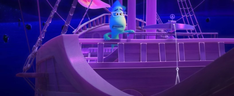 Cet aspect est à la fois purement capitaliste mais aussi pédagogique car ces âmes sont instruites par des âmes d’adultes soient décédés ou entre la vie et la mort. Ce passage initiatique est plutôt intéressant quoique inégalitaire car qui pourrait se permettre de jauger la légitimité d’une âme sur Terre. Néanmoins, Soul a réussi le pari de conjuguer le surnaturel et la technologie. Le monde astral est digne d’un livre d’Octavia Butler : ces petits êtres bleus sont signes par leur couleur, d’une humanité sur le plan physique mais d’une étrangeté non terrienne. Ainsi, le bleu représente symobliquement la sagesse ou encore le détachement de l’âme. Les passages multi dimensionnels sont à mi-chemin entre l’au delà et l’espace, où aucune règle technologique existe et qui sont gardés par des entités polymorphes et omnipotentes. Ces mêmes êtres restaurent le bon déroulement des vies teriennes et spirituelles, comme des anges gardiens. Personnellement, le meilleur endroit reste « la zone ».