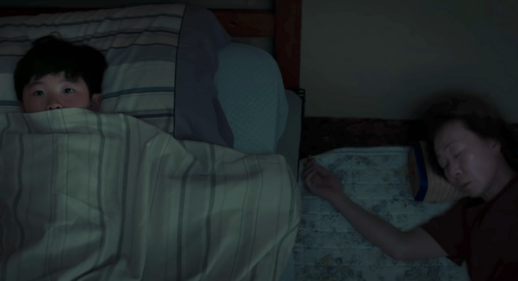 L’arrivée de la grand mère, Soonja (jouée par Yoon-Yeo-Jeong) dans la famille est censée apaisée les tensions et resserrer les âmes de la famille. La place de la grand-mère dans Minari va au delà d’un aspect relationnel ou familial : avec la grand-mère vient un savoir, des gestes et des paroles héritées et acquises, transmises aux parents et à leurs parents. La grand-mère vient rappeler les choses simples de la vie. Par sa sagesse, elle vient solidifier la famille. Et qu’elle est avant tout, une mère . Dans les sociétés « mécaniques » ou holistes, les grands parents viennent toujours aider et quelque part, faire comprendre à la jeune famille que tout problème a une solution, il suffit de les affronter et surtout de s’écouter. Enfin, Minari appuie et affirme l’importance du lien du sang et psychologique entre les grands-parents et le petit fils. Comme un saut générationnel, on retrouve la même fibre en terme de caractère chez la grand-mère et le petit fils : le sournoisement, le caractère fort et hargneux et surtout les pipis au lit, qui saute une génération. Ceux du petit-fils sont signes de traumatismes ou de changements en plus de ses problèmes de coeur. Celui de la grand-mère vient aussi d’une évènement douloureux, suite à une attaque cardiaque. Dans cette scène aussi douce que triste, la grand-mère et le petit fils échangent leurs ressentis. Comme un échange d’énergies, lorsque les deux se prennent dans les bras, on fait face à une absorption des problèmes du petit fils, comme un sacrifice. Le petit-fils David (joué par Alan Kim), s’est ouvert et a enfin accepté l’écoute, l’amour et surtout ses racines coréennes. La grand-mère est comme un ange gardien, venue soutenir la famille rien que par sa présence.