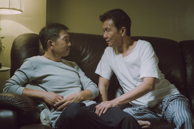 Les deux hommes s’apprivoisent et se lient rapidement l’un pour l’autre d’un amour sincère. Chacune de leur échappée émeut et touche par sa beauté, tout n’est que délicatesse et attachement. Hoi, qui vit sous le même toit que son fils et sa belle-fille tente de désinhiber Pak en l’emmenant dans des endroits réservés à la communauté LGBT+ dans lesquels clameur et émois cohabitent, offrant des parenthèses sensuelles et érotiques filmées avec une berçante suavité. La naissance de leur idylle ressemble à celle d’un premier amour, un premier amour sur le tard, après une vie contrainte au mensonge et à l’hétérosexualité pour survivre et rester dans les normes.