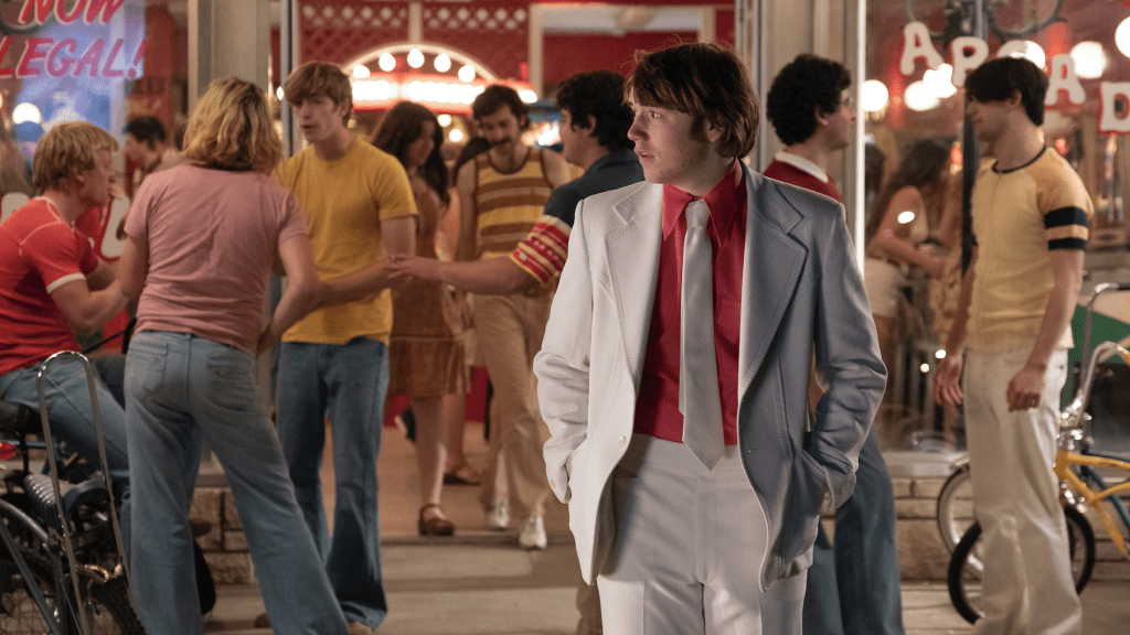 Enfin, les forces principales du film restent sa cinématographie et son réalisme. Le film rend pleinement hommage à une certaine candeur souvent vue au cinéma des années 70, pour une Amérique blanche aisée et de classe moyenne. Tendre et acide à la fois, le film est riche en couleurs claires mais aussi joviales, donnant totalement envie aux spectateurs de vivre à l’intérieur (ou du moins c’était mon ressenti). Les musiques du film, toutes d’époque, amplifiaient les scènes d’euphorie ou tristesse et d’éveil sans forcer. Licorice Pizza est clairement un film haut en musiques et styles. Les images et le casting correspondent, tout comme les tenues ou même les coiffures. Sans vouloir se conformer, le film a un naturel déconcertant prenant en compte les thématiques économiques et réelles de l’histoire américaines (élections locales ou choc pétrolier de 1973). Enfin, le film renvoie à une fraîcheur des années 70, où les corps, les arts et l’économie étaient les maîtres de la liberté individuelle. Et où n’importe qui se pouvait de rêver et s’accomplir, dans une Amérique à son paroxysme en terme de soft power et affirmant ses identités culturelles comme le film le démontre. Des ados faisant vraiment leurs âges aux voitures et mobiliers, Licorice Pizza est un délicieux voyage dans le temps, qui nous transporte loin de nos quotidiens.