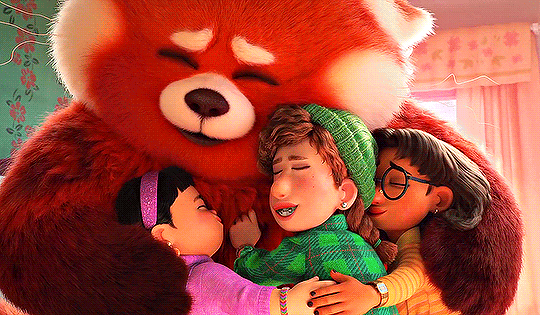 Le film passe aussi et surtout par la matrilinéralité pour comprendre la relation mère-fille. Et ainsi par le féminisme. Mei ne pouvant au début compter sur sa mère et son père passif, trouvera refuge chez ses amies. Cette sororité est à l’image de beaucoup de situations réelles où face à une famille aveugle à nos détresses et appels, ce seront nos pairs qui prendront le relai par empathie et amour. Turning Red réaffirme l’importance de se construire un cercle, des liens amicaux ou sociaux solides et encore l’importance de partager et communiquer entre filles et femmes.