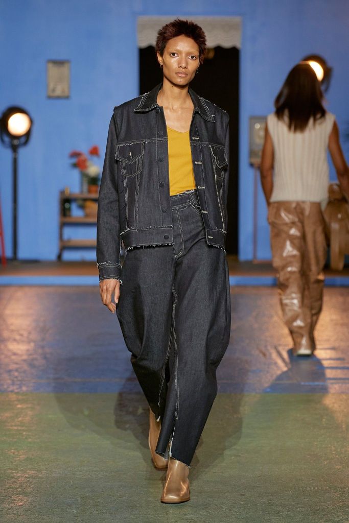 Bottes en cuir souples, jean déstructuré et laine, la collection se veut familière mais aussi en raccord avec la saison annoncée. Une belle réussite pour la créatrice qui continue son ascension dans le milieu, en imposant sa vision multiculturelle, diversifiée et scénarisée de la mode.