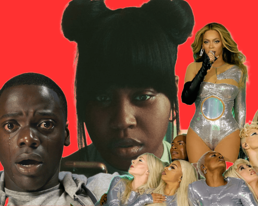La série s’inscrit dans le genre du « black horror », en y faisant des clins d’œil à des films jeunes mais déjà cultes comme Get Out (2017) ou tout simplement à la série Atlanta, qu’on peut qualifier de grande sœur de Swarm. Donald Glover étant le producteur et créateur des deux séries, on ressent indéniablement sa touche si particulière. L’énergie ambiante insaisissable, entre bizarrerie et une lenteur latente parsemée par de l’absurde et une menace presque omniprésente. Le superbe épisode avec l’artiste Billie Ellish dans un rôle de gourou, rendait objectivement hommage à Get Out ou encore Midsommar (2019). On retrouve des scènes similaires, comme la déjà mythique scène de la tasse de thé dans Get Out, qui résonne avec la dure et intense scène thérapeutique, rythmée par des claquements de doigts, dans Swarm. Un autre leitmotiv se redessine à nouveau : une femme noire/ personne noire, initialement socialement fragilisée et esseulée, se retrouvant dans un endroit majoritairement blanc et aisé et où se trouve un collectif atypique, voire une secte, manipulée et piégée à des fins sacrificielles ou morbides. Et elle est rarement maîtresse de son sort, un véritable cauchemar en somme.