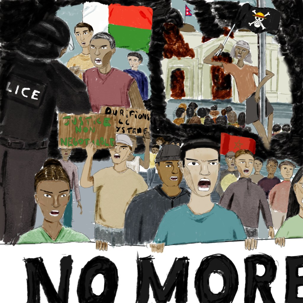 De Madagascar au Népal et plus récemment au Maroc, depuis plusieurs semaines, les nouvelles générations, surtout issues de pays d’Afrique et/ou d’Asie, se soulèvent. Le point commun de ces révoltes, c’est qu’elles prennent place dans des pays anciennement colonisés et aux gouvernements répressifs et dictatoriaux. Près de 15 ans après les printemps arabes, qu’est-ce que ces révolutions des Suds, signifient réellement ?